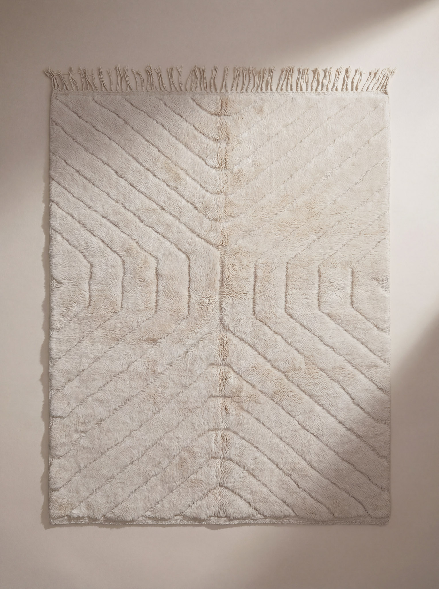 Dette vakre Mrirt-teppet i beige er håndknyttet med 100 % naturlig saueull, og har et subtilt mønster i samme farge, som skaper et harmonisk design. Teppets myke tekstur gir en luksuriøs følelse, og det tidløse mønsteret tilfører et sofistikert preg til ethvert rom. En ekte håndverksperle som er både estetisk tiltalende og komfortabel.
